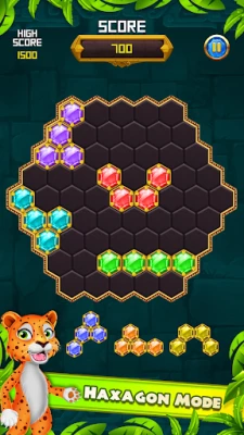 Jewels Jungle Treasure - Block Puzzle Hexa is a Bunch of 4 simple yet addictive Puzzle Games. Your Quest for Perfect Block Puzzle Game is getting over here. It is a very fun and exciting block puzzle game, it makes you keep playing! It is The KING of all Block Puzzle Games! Jewels Jungle Treasure - Block Puzzle Hexa is one of the Great games of block puzzle for you.