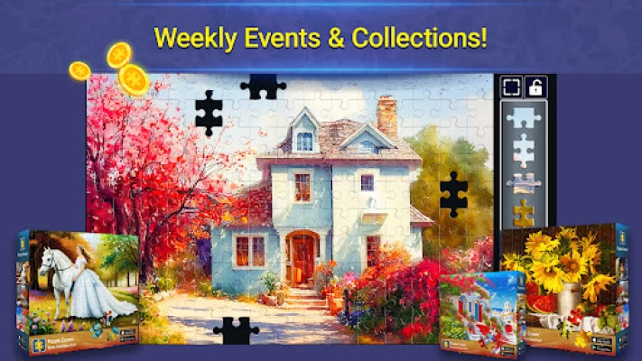 - Coin System. Collect coins by completing jigsaw puzzles and pend them to unlock more puzzles!