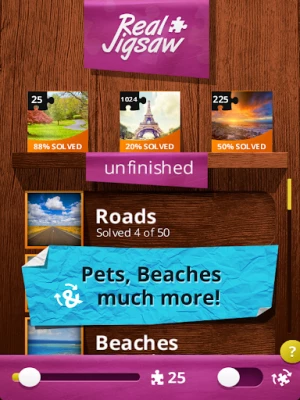 There's a vast amount of free photo puzzles packs, such as: beach puzzles, mountain, castle, pet images, cats and dogs puzzles, Halloween, etc.