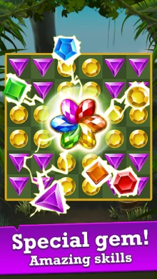 Swipe, combine, and match jewels, gems, and stones for jungle match-3 jewel adventures!