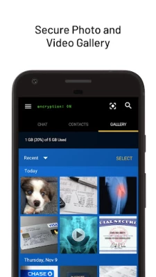 • Private, encrypted media gallery (nothing is saved on device’s camera roll)