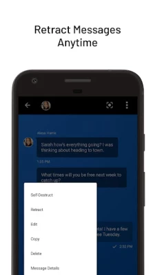 Need your private photos and messages to disappear? We’ve got you covered with our self-destruct timer. Sent something you regret? Retract your message without a trace at any time. Need to blur your screen from prying eyes? Our new stealth mode allows you to blur your screen for maximum privacy. Have you lost your phone and therefore all your messages? Login to the app on a new device and restore your conversations.