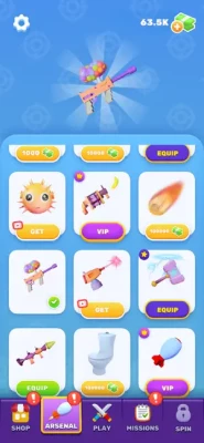 Hit, shoot and crush! Fight colorful and crazy giants with the funniest weapons: fish, paintball gun, rockets, banana launcher, duck, arrows, flamethrower, and more! Use the power of weapons and enjoy it.