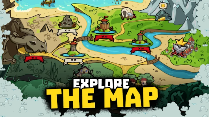 Explore the map to find enemy castles, artifacts, and bosses to defeat. Defeating bosses yield valuable rewards that you can use to improve your castle and increase your power.