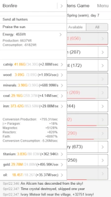 Kittens Game is a village simulation text game. You manage a village of kittens as they acquire resources and unlock new technologies.