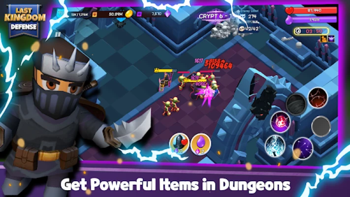 You can grow castles and villages with Mithril obtained by defeating Zac. Level up your castle and deploy more heroes and soldiers to attack the increasingly stronger enemies!