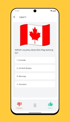 Learning – An effective way to memorize flags for long-term retention. In this section, you can review the flag, country name, and other details using visual memory techniques.