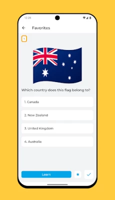 Tests – Help reinforce knowledge by matching the flag with the country name through multiple-choice questions.