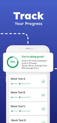 Our app allows you to monitor your study progress as well as your test performance. Stay updated about your average times, test scores and easily pick up from where you left off with our 'Continue Studying' feature.