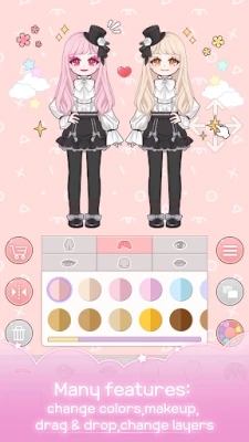 4. There are many available features such as changing the color, makeup, changing layers, drag & drop, pretty animations, and ample storage space.