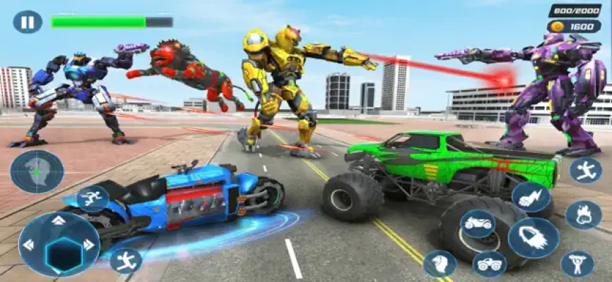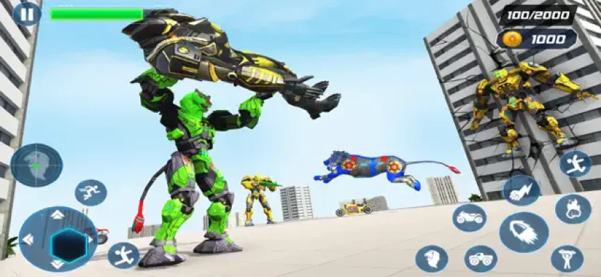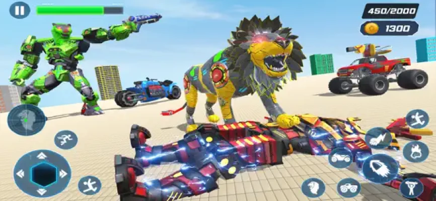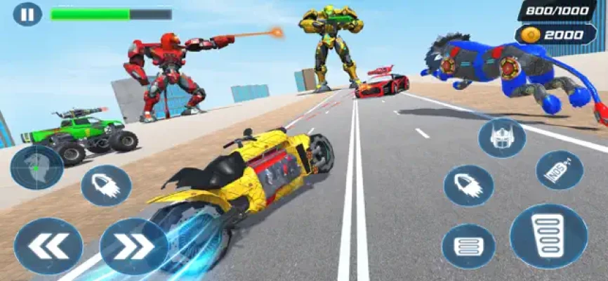 Welcome to the modern war era where animal robots and mech are attacking your city. You have to control super hero robot who can transform between lion and bike or a warrior. Rescue your city in crisis time as superhero. Transform your robot into bike to reach city area with swift driving skills. Then transform into hero or lion to take out enemy robots in this futuristic battle.
