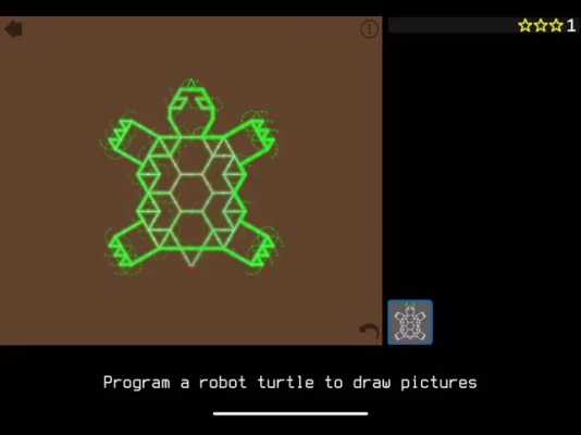 Unleash your programming talent to create new buttons to upgrade the turtle. As you progress, you can produce more intricate graphics with only a few touches.