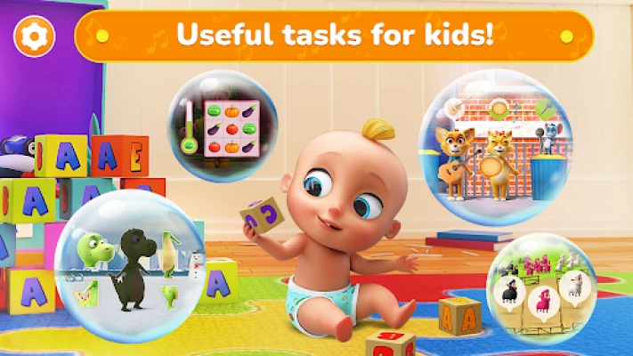 What can be better than exploring the outer world with baby games for kids? Johny and friends are ready to ride down the slide, play guitar and get to know animals. Bright and intuitive free toddler games for 2 year olds interface is something every kid will like! Free toddler boy games are here!