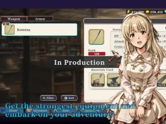 ・An idle RPG where you recruit adventurers, gather equipment, and grow stronger