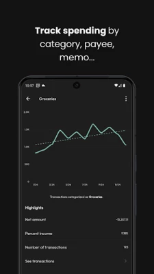 Spend Trackers: Track spending by category (or category group), payee, memo keyword, flag color, or even a combination of these. See net spend, weekly spending, monthly spending, percentage of income spent, and more!