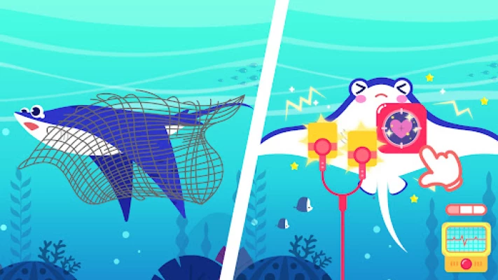 [DuDu Ocean Doctor] Integrate science and enlightenment, transform the boring and difficult book knowledge into a vivid and interesting animation scene to help children better understand and understand marine life. Through the submarine rescue scene, children can deeply understand that once the marine environment is destroyed, the first cute marine animals will be hurt first. Therefore, we must jointly protect marine animals and protect the marine environment!