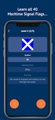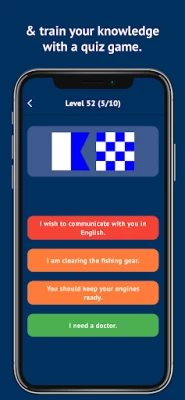 The app teaches maritime flag signalling (generally flaghoist signalling), which is the principal means other than radio by which ships communicate to each other or to shore.