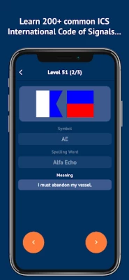- 104 levels and 35 challenges teaching and training maritime flag signalling and the International Code of Signals (ICS).
