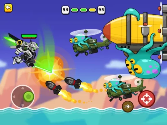 Playing Methods: In the game, you become the mech warrior who saves our planet. You go to the clouds with the best weapons on the planet to stop the alien invasion. Use the left hand to manipulate the mech warrior to avoid the alien attack.And use the right hand to control your weapon to destroy aliens.