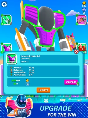 - Upgrade your robot. Unlock new weapons to use in combats and upgrade your robot's defense. To win the battle of the titans, your war robot must always be one step ahead of the enemy.