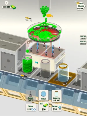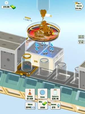 Melt plastic balls, gold bitcoins, and other different stuff! Slice marshmallows, cook corn and chop honeycombs! Try to fill as many bottles as you can to make a higher in-game profit! Use it wisely to be able to efficiently upgrade your melting machine and bottles! Then you can melt faster and more to produce higher profit, which you need to complete a level and find more substances to melt!
