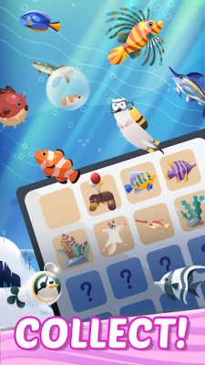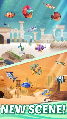 Merge basic marine items to create vibrant fish, beautiful corals, and unique decorations. The more you combine, the more stunning and diverse your aquarium becomes! Show off your creativity as you build a one-of-a-kind underwater world.