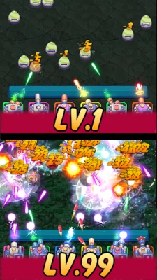 Game features: - Merge 2 same cannon to level up - Weapons fire automatically by default. - Many strategies to customize your squad. - Mass destruction of monsters! - Each stage is filled with new monsters, bosses and items. - Equip chipset to bonus stats - Equip more guns to bonus many mechanics