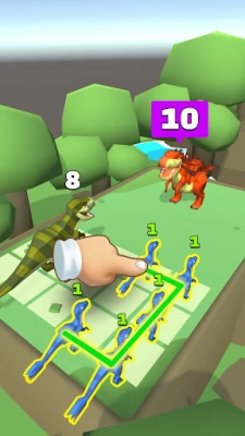 Grow your dinosaurs and warriors from simple soldiers and velociraptors to terrific monsters when you merge them. Use your finger to draw the right combination and evolve your monsters.