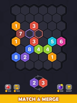 Merge Hexa Puzzle is an endless numpuz game.