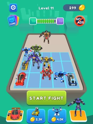 Are you the merge master of robot car transforming games? You can choose many variations to combine with your team. Earn money in cars and robots game, and combine them to gradually upgrade your team.
