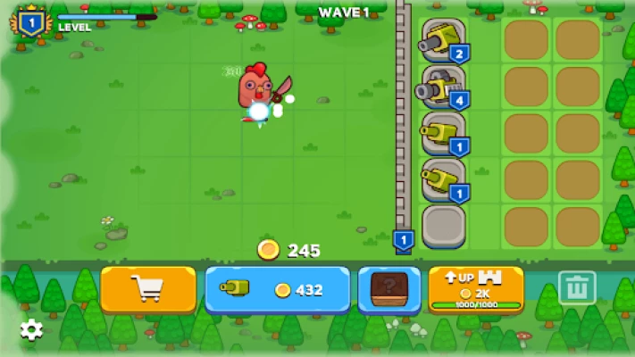 A relaxed and fun placement strategy tower defense mobile game, in which players will place cannons to resist the invasion of the Chicken Legion, continuously merge the same turrets, create new turrets, and enhance their abilities.