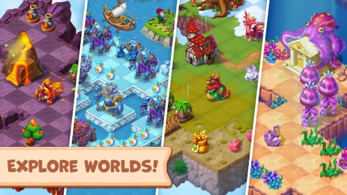 • Explore vast MAGIC territories full of mysterious creatures, bedazzling characters, and captivating objects populating this infinite world of merge games!
