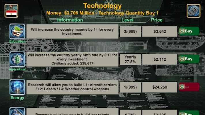 * Stay informed with World News (Economy, Relations, Spy, and War).