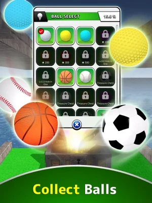 Unlock a variety of balls with different appearances and physics by opening treasure chests or achieving hole-in-ones on specific courses. Choosing the right ball can be crucial to your game strategy.