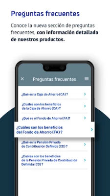 A través de esta aplicación podrás administrar tus prestaciones laborales de forma ágil y sencilla. Accede a productos como Caja de Ahorro, Fondo de Ahorro, Fondo de Pensiones y muchos más, en los que podrás consultar tu saldo, revisar aportaciones, ver rendimientos, solicitar préstamos y descargar estados de cuenta.