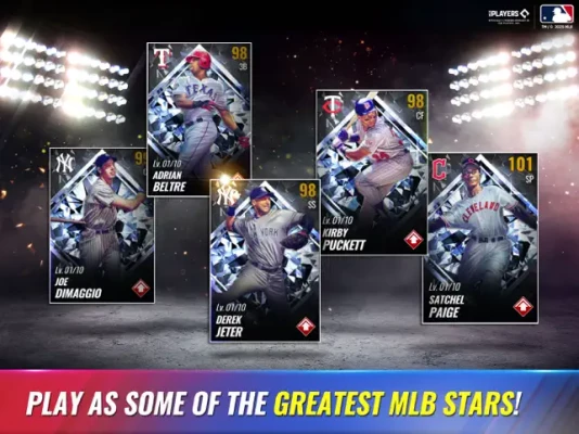 Play alongside MLB icons like Derek Jeter, Joe DiMaggio, Adrian Beltré, Kirby Puckett, and Satchel Paige.