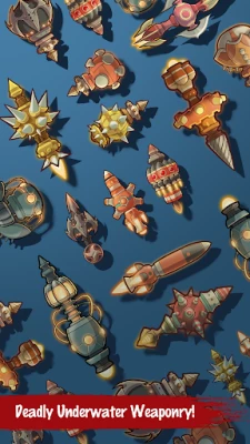 ✔ Nine Crazy Weapons: Spend the loot awarded for successful fishing expeditions to upgrade a variety of Sea-Mine lures with spinning blades, spread-shot projectiles and heat-seeking abilities.