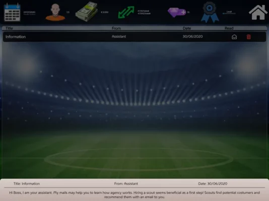 You can build relationships with the best clubs in the world. Grow your agency with the money you earn, buy new items from the store and gain reputation in the football world.