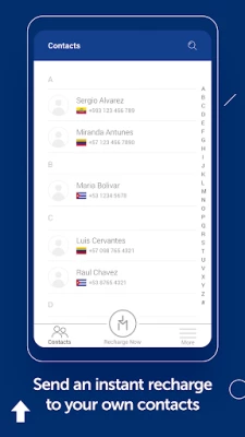 Add recharge details - Select someone from your contacts list or enter the recipient’s country and phone number in the “Recharge Now” tab