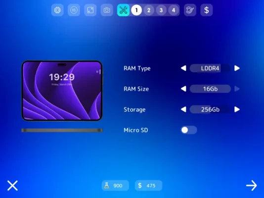 Mobiles Tycoon gives you almost complete freedom of action. Create smartpones and tablets from scratch by selecting the desired characteristics and design. The game has a lot of features that are not found in other games of this genre, such as Smartphones Tycoon or Devices Tycoon: detailed statistics of your company and products, intelligent algorithms for evaluating products and behavior of companies, interactive operating systems created by the player that you can test.