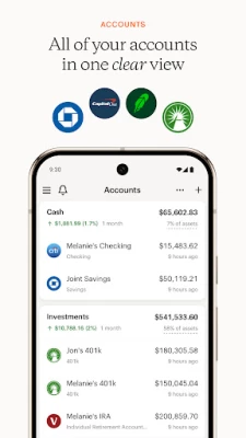 - Connect your accounts and see everything in one place so you can get a clear view of how your money is moving and track progress on your net worth.