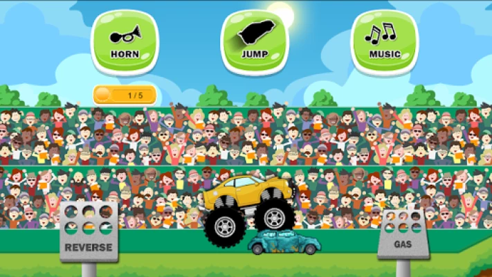 if your children love monster trucks, then this is for them! a simple monster truck racing game for young children and toddlers between the age of 2 and 7. big buttons make it easy for the child to play the game, including the horn, jump, music, accelerate and brake. no difficult obstacles so the child can always reach the end of the level. the car wont flip!