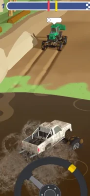 Avoid the dreaded mud pit, get stuck and it's all over. Win, and earn cash to upgrade your truck!