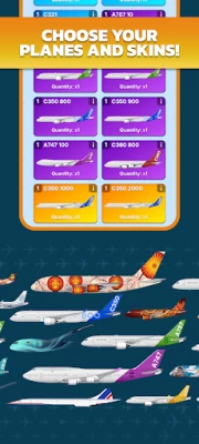 Take control of a fully customizable airline: name, color, logo, and style. Grow your fleet of 24 planes of varying rarities – common, rare, epic, or legendary – each with unique performance, speed, capacity, and range. Upgrade them to maximize profits and adapt your strategy to every destination.