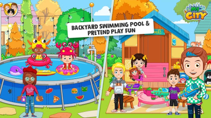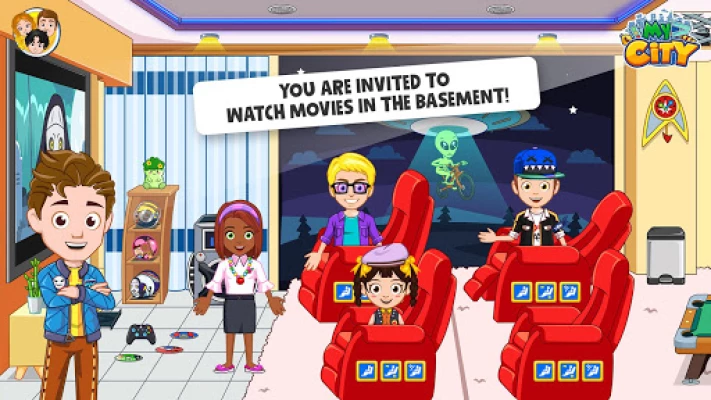 My City: My Friend's house is filled with lots of new characters, fun rooms and locations and lots of interactable accessories just ready for you to discover, explore and pretend-play with. Make sure to check out the Kids Room and Babies Room. Sit with your friends to watch a movie at the Cinema & Arcade Room or throw a wild pool party at the Garden, the options are endless! With so many fun locations to explore and so many new characters there are no limits to the stories you can play out!