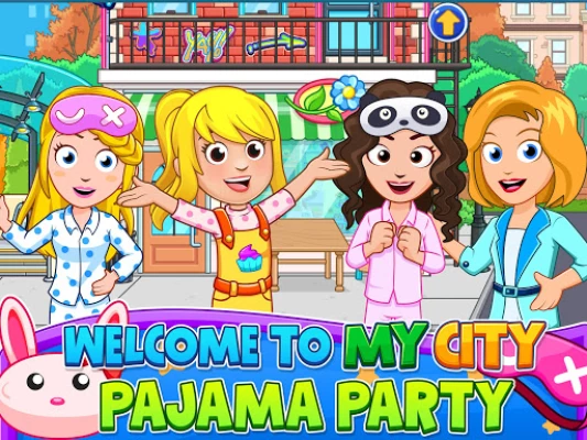 Get everything you need to host the perfect pajamas party game in my city. Flower shop for that extra fun party feeling, night store that sells all you need for your party, a large friends house with lots of rooms and locations just perfect for your party. Do you want to hold the party in another house? don't worry about it. My City games are connected, you can easily move all items and characters between our other My City games.