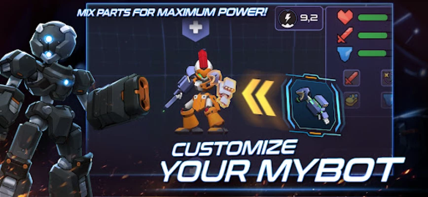 Download Mybots Royale now for free and embark on an exhilarating journey through a world brimming with strategy, action, and electrifying real-time multiplayer PvP robot battles. Prepare for combat; we'll see you in the arena!