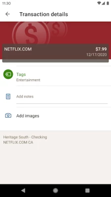 -Keep your transactions organized by allowing you to add tags, notes and photos of receipts and checks.