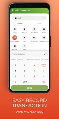 - Super easy and simple to record expense, income, debt, bill, and payment with just a few taps