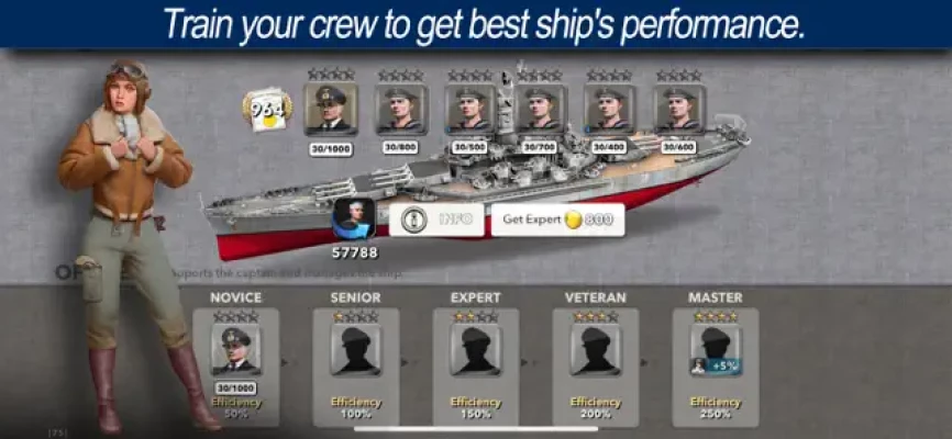 Customize and upgrade your ships for different types of performance! Choose your own strategy based on big guns, torpedoes, hedgehog, fighters, dive bombers, torpedo bombers, mine and airstrikes. Train your crew to get best ship's performance.